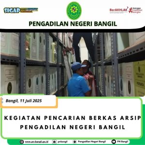 Jum’at, 11 Juli 2025 Kepaniteraan Hukum beserta staf dibantu PPNPN melaksanakan kegiatan pencarian berkas arsip 2008 dan 2010 di kantor Pengadilan Negeri Bangil lama maupun baru.
